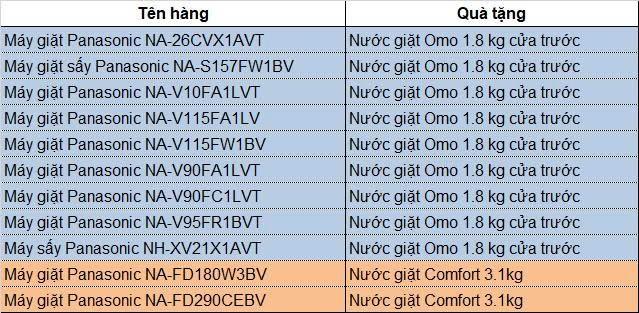 Khi Quý Khách hàng mua 1 sản phẩm máy giặt mang nhãn hiệu Panasonic theo danh sách chi tiết sản phẩm khuyến mại đính kèm sẽ được tặng sản phẩm dùng để khuyến mại tương ứng.