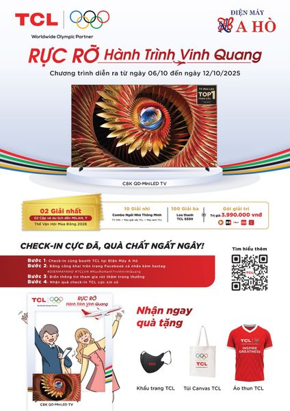 * Chỉ cần CHECK-IN cùng booth TCL tại Điện Máy A Hò là nhận ngay quà tặng TCL hấp dẫn!
