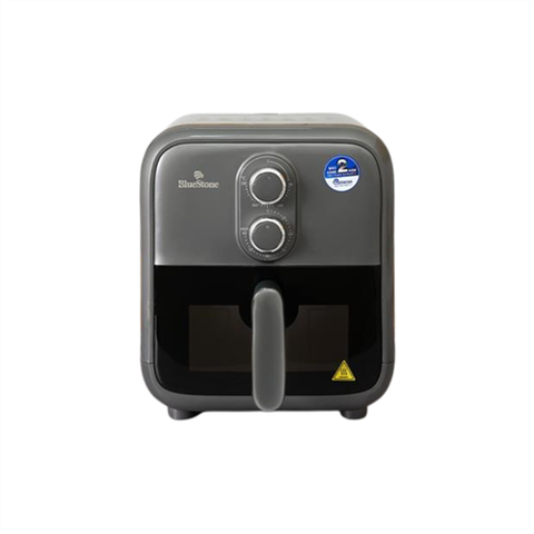Nồi chiên không dầu BlueStone điều khiển bằng nút xoay đơn giản. Mặt trên của sản phẩm còn được trang bị bảng công thức tham khảo với hình ảnh minh họa sinh động, hỗ trợ người dùng dễ dàng lựa chọn chế độ chiên, nướng phù hợp.