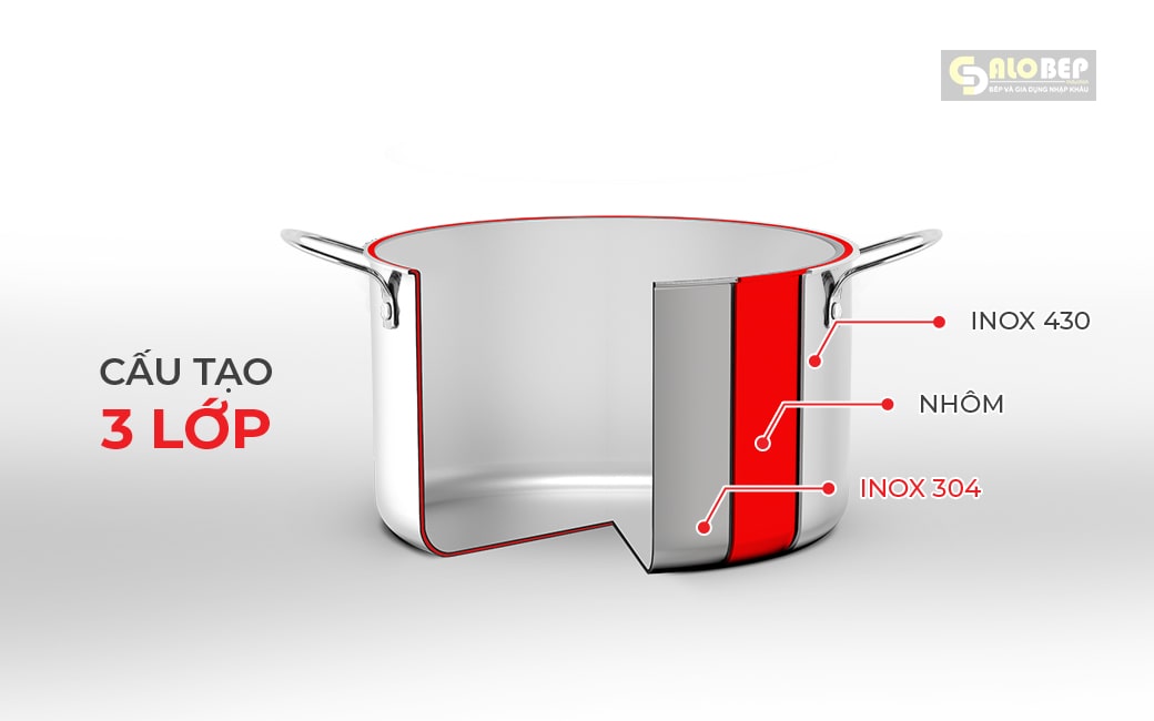 Bên ngoài, lớp vỏ được làm từ inox 430 một loại inox chịu được nhiệt độ cao và chống ăn mòn, đảm bảo hiệu suất nấu ăn lên đến 98%. Lớp này không chỉ tạo nên vẻ đẹp bóng mượt mà còn bảo vệ nồi khỏi những tác động bên ngoài, giữ cho nó luôn mới mẻ và bền bỉ qua thời gian.