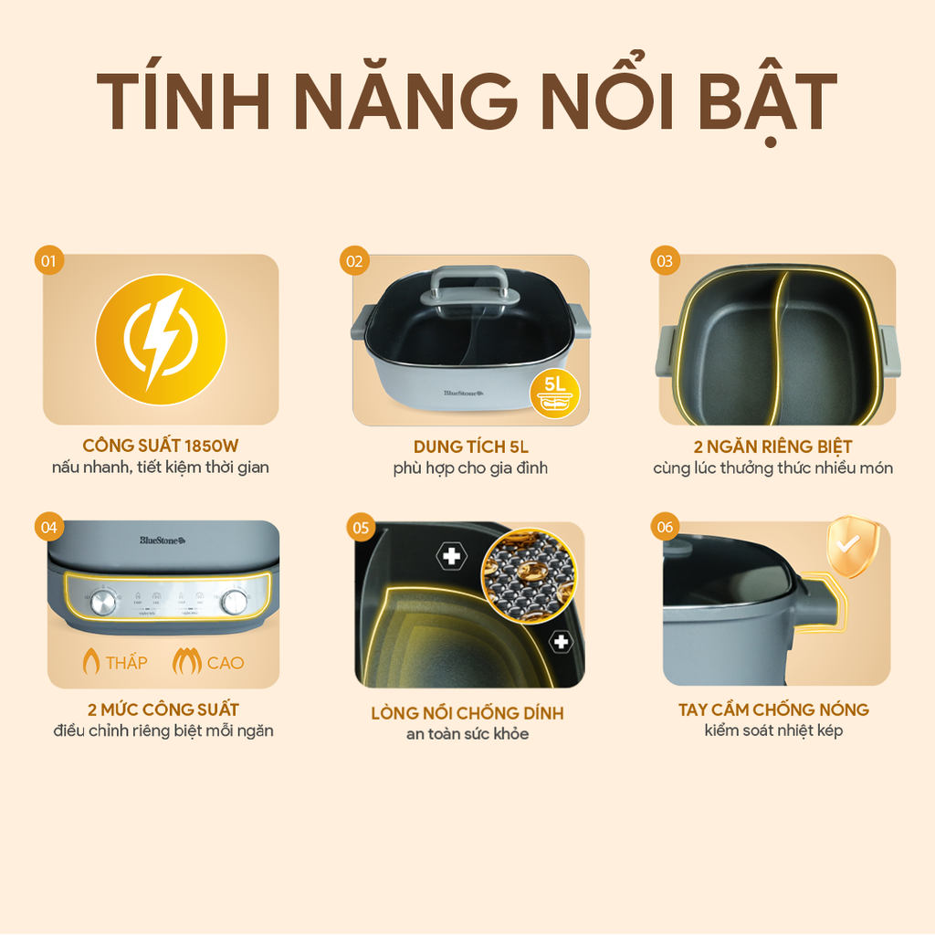 Nồi lẩu điện đa năng BlueStone MPB-7257 - Giải pháp nấu ăn tiện lợi và an toàn