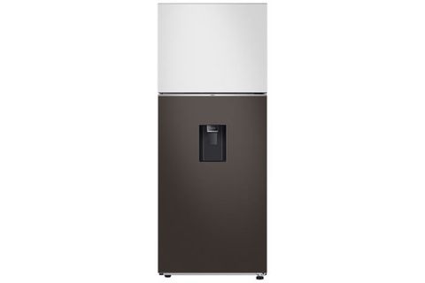 - Tủ lạnh Samsung 2 cửa, ngăn đá trên sở hữu thiết kế Bespoke với phối màu Trắng Thạch Anh/ Nâu Ánh Than hiện đại, dễ dàng hài hòa với mọi phong cách thiết kế bếp.